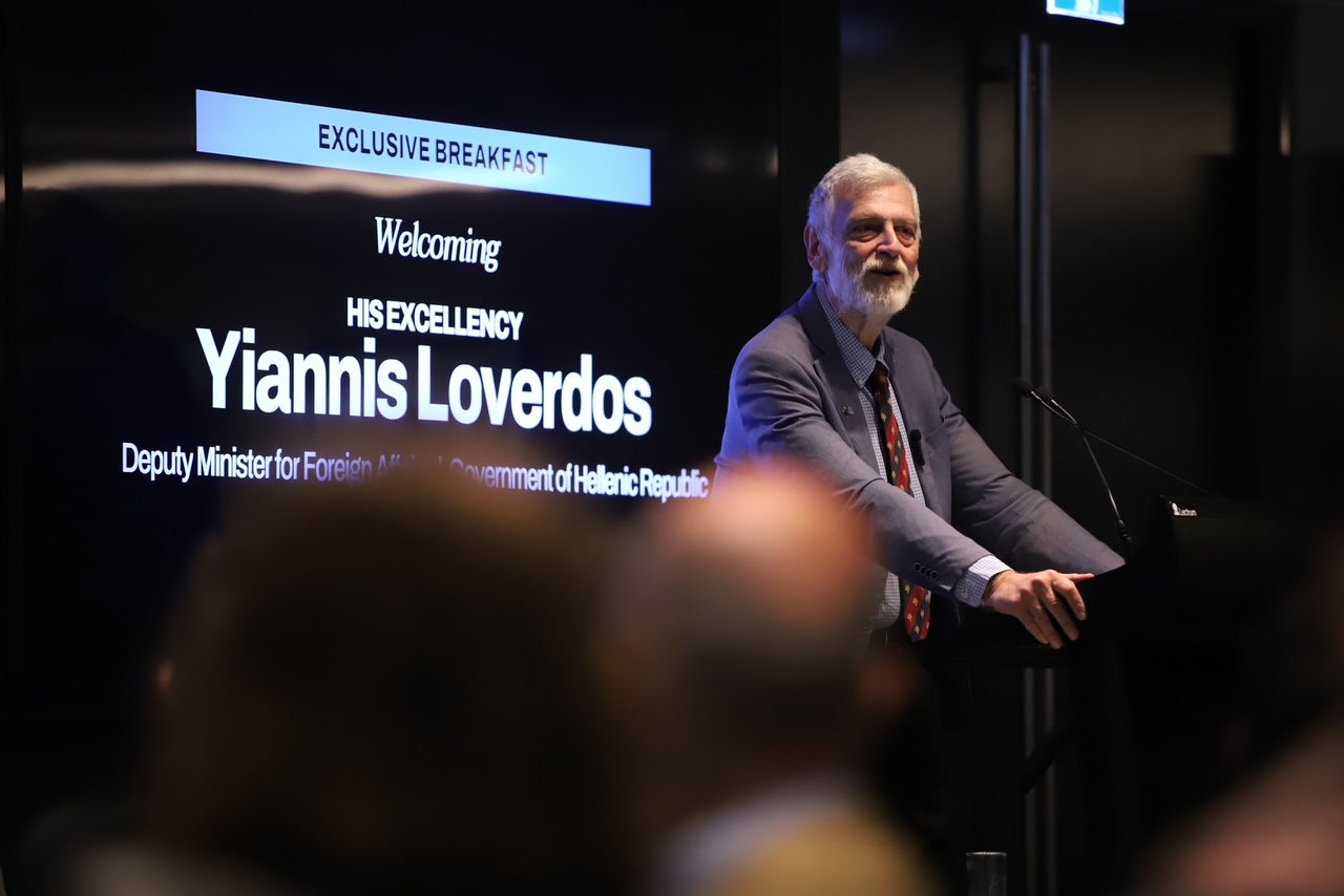 Μια εξαιρετικά σημαντική εκδήλωση πραγματοποιήθηκε, χθες (09/10/25), στο Business Sydney, με κεντρικό ομιλητή τον Υφυπουργό Εξωτερικών κ. Γιάννη Λοβέρδο, ο οποίος απηύθυνε λόγο σε περισσότερους από 100 Ελληνο-αυστραλούς επιχειρηματίες και εκπροσώπους του οικονομικού και κοινωνικού βίου της Νέας Νότιας Ουαλίας.