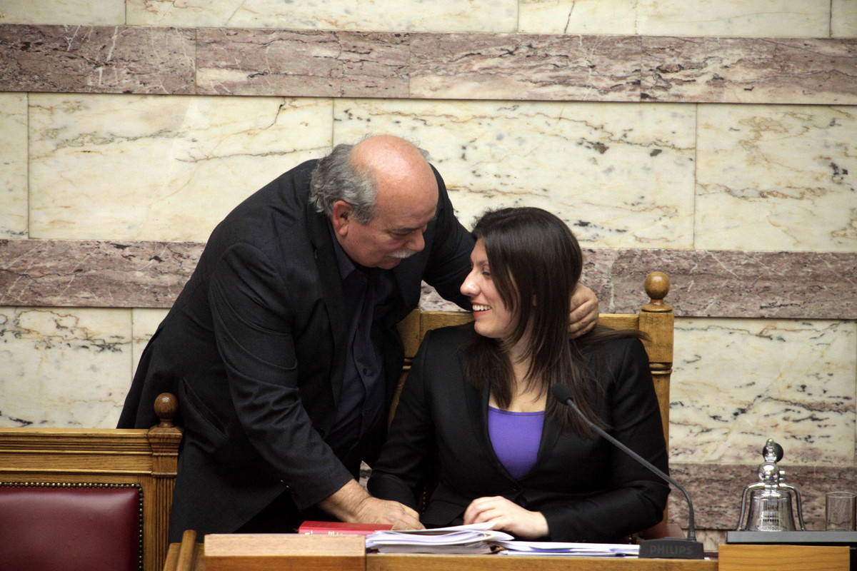 Ο φωτογραφικός φακός κατέγραψε πολλά ενσταντανέ από την συνεδρίαση και μεταξύ αυτών ήταν και αυτό με τον υπουργό Εσωτερικών, Νίκο Βούτση να γέρνει με πατρικό ύφος προς το μέρος της κας Κωνσταντοπούλου.