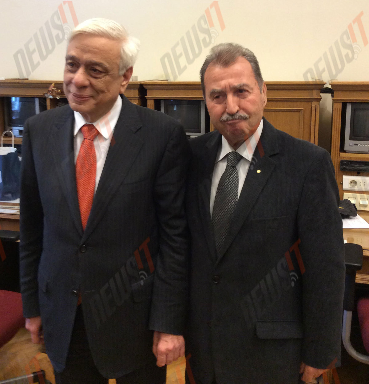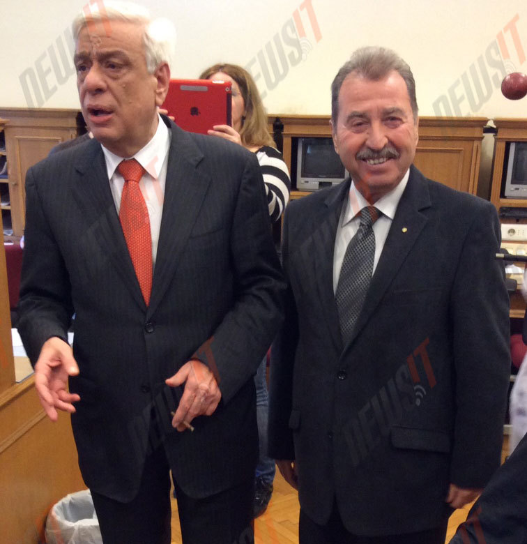 Ασπάστηκε τον Προκόπη Παυλόπουλο, του ευχήθηκε καλή επιτυχία και δεν αρνήθηκε να βγάλει μια φωτογραφία με τον νεοεκλεγέντα Πρόεδρο της Δημοκρατίας.