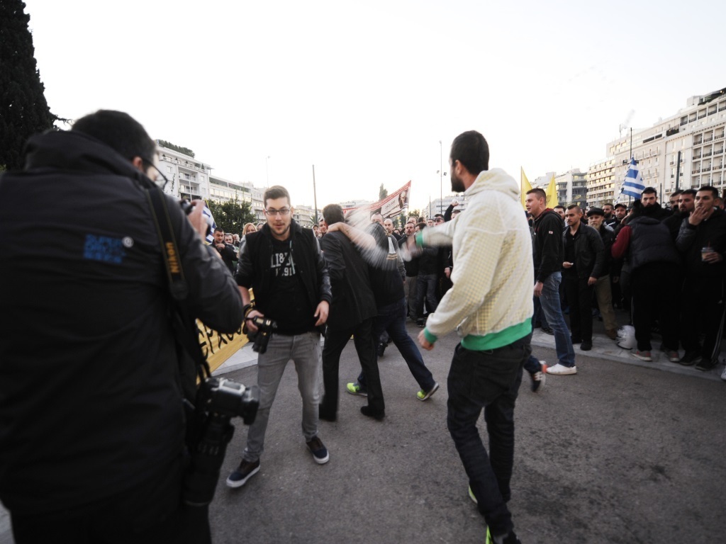 Φαίνεται ξεκάθαρα και στο βίντεο πως κάποιοι αρχίζουν να του πετούν νερά, κάποιος τον πλησιάζει και του ρίχνει μπουνιά στο πρόσωπο, με την αστυνομία να βλέπει τον συγκεκριμένο άντρα και να μην κάνει το αυτονόητο, δηλαδή να τον συλλάβει.