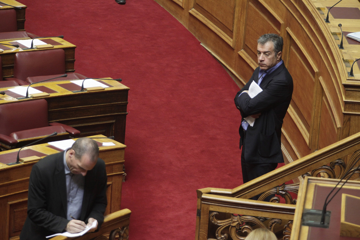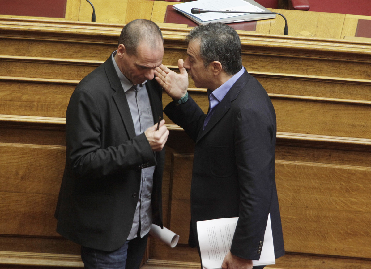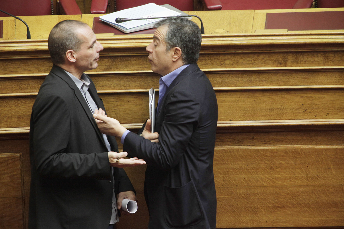 Ένταση, σκεπτικισμός και προβληματισμός. Η γλώσσα του σώματος “προδίδει” τον Γιάνη Βαρουφάκη και τον Σταύρο Θεοδωράκη και όπως ήταν φυσικό μονοπώλησε τα φλας των φωτογράφων.