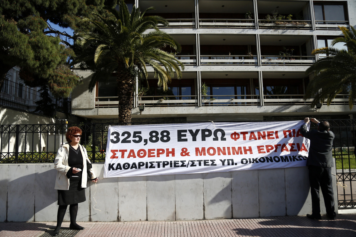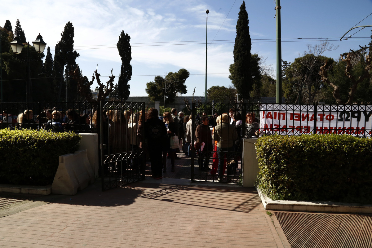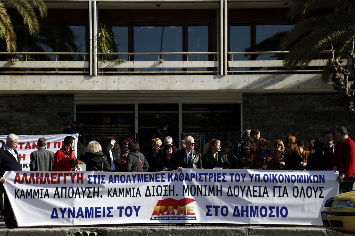 Οι περίπου 300 καθαρίστριες διαμαρτύρονταν γιατί έμειναν έξω από το νομοσχέδιο για την επαναπρόσληψη δημοσίων υπαλλήλων.