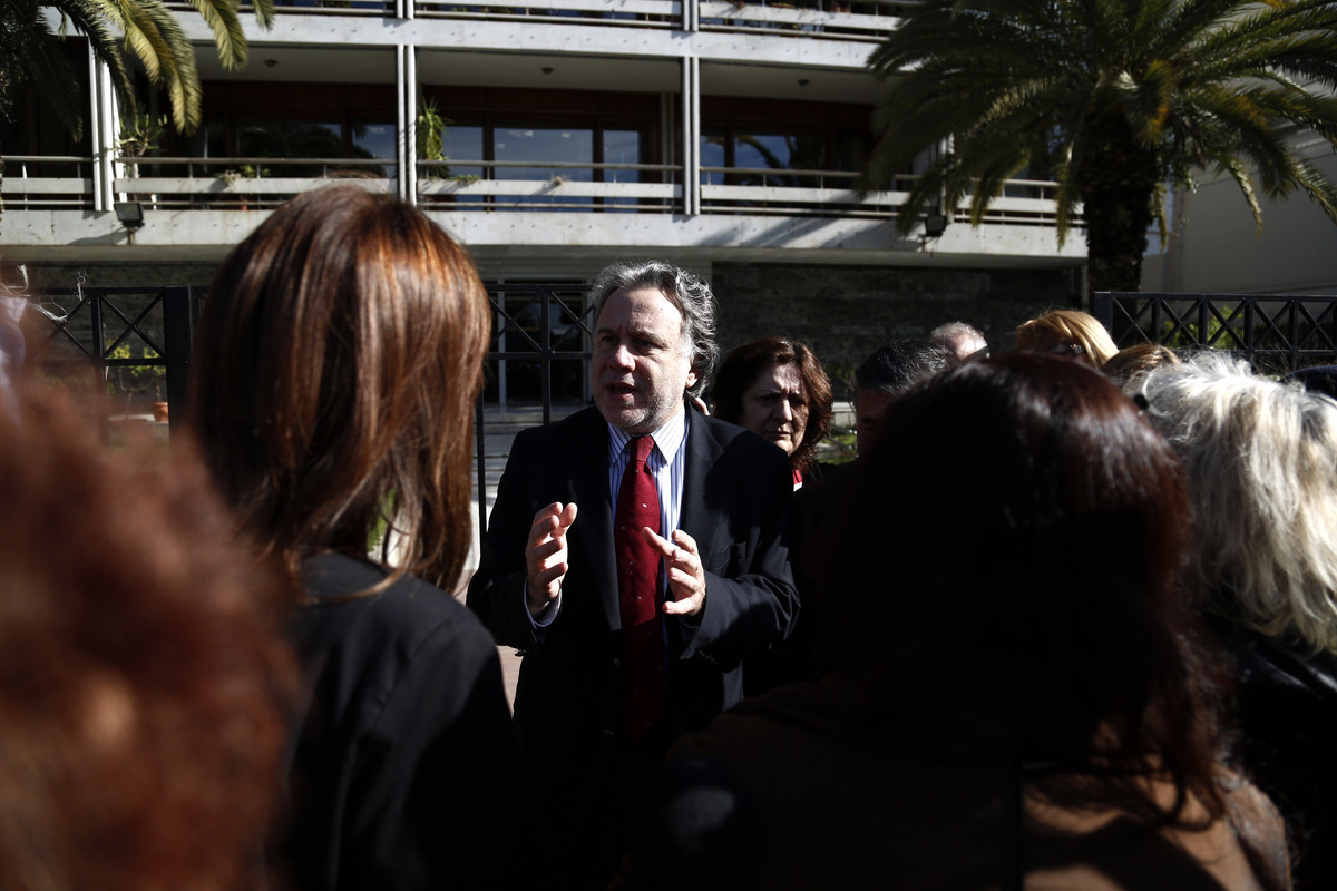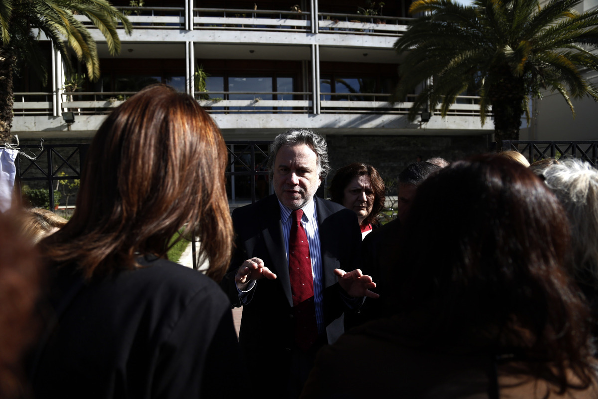 Ο Γιώργος Κατρούγκαλος κατέβηκε από το γραφείο του για να συναντήσει τις καθαρίστριες και τους εξήγησε ότι θα πρέπει να απευθυνθούν στο υπουργείο Οικονομικών, αφού δεν είναι απολυμένες και έτσι δεν μπορούν να συμπεριληφθούν στο νομοσχέδιο που κατέθεσε.