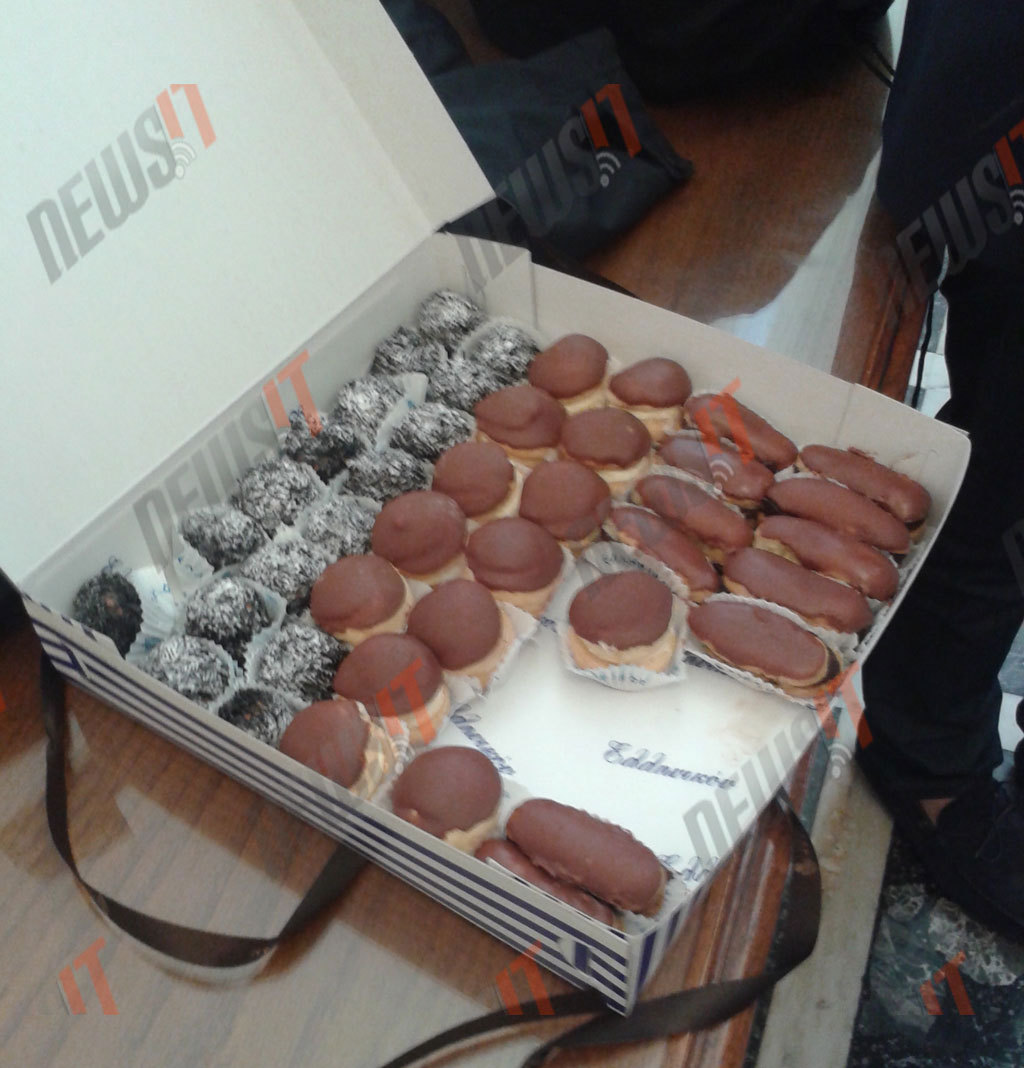 Έτσι, ένα κουτί με λαχταριστά κοκάκια, εκλεράκια και τρούφες έκανε την εμφάνισή του και σε λίγα λεπτά έγιναν ανάρπαστα! Οι ευχές έδιναν και έπαιρναν και ο Πρόεδρος των ΑΝΕΛ τις δεχόταν με περίσσια ευχαρίστηση!