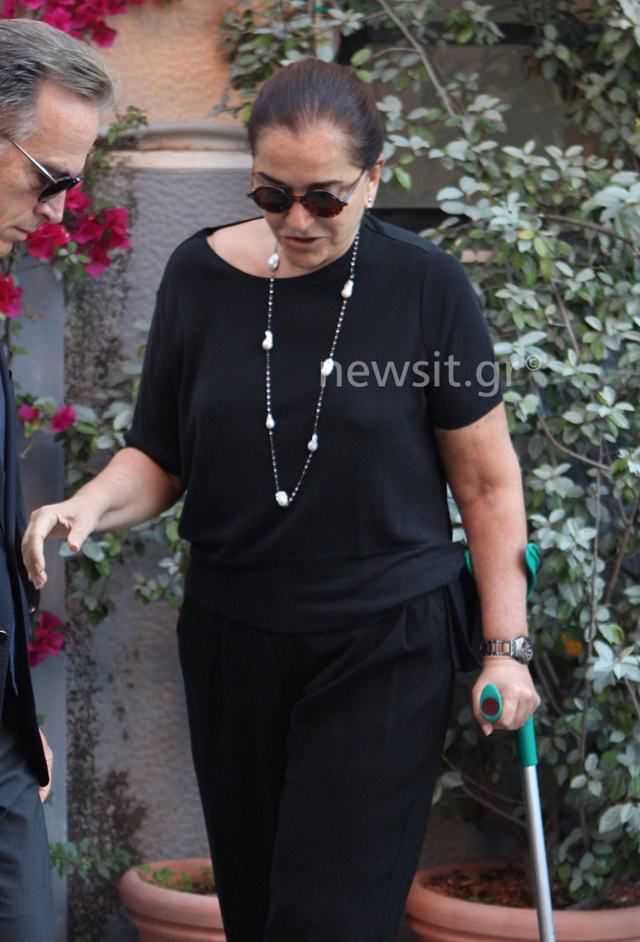 Το πρόσωπό της ανέκφραστο. Φορούσε, φυσικά, μαύρα, ένα παντελόνι και μια μπλούζα. Στηριζόταν σε μια πατερίτσα για να περπατήσει. Βγαίνοντας από το σπίτι, συνάντησε μια ηλικιωμένη γυναίκα, στάθηκε για να της μιλήσει και χωρίς να κοιτάξει προς την πλευρά όπου βρίσκονταν οι κάμερες, μπήκε στο αυτοκίνητο που την περίμενε.
