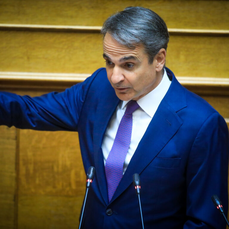 Ο πρωθυπουργός Κυριάκος Μητσοτάκης στην Ολομέλεια της Βουλής (Πηγή φωτογραφίας: ΓΙΩΡΓΟΣ ΚΟΝΤΑΡΙΝΗΣ / EUROKINISSI)