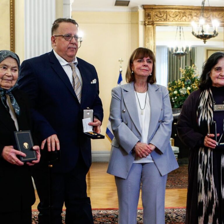 Βαθύτατα συγκινημένη η Πρόεδρος της Δημοκρατίας Κατερίνα Σακελλαροπούλου, απένειμε σήμερα (18.12.2024) σε ειδική τελετή στο Προεδρικό Μέγαρο, τα παράσημα, του Χρυσού Σταυρού του Τάγματος του Φοίνικος.