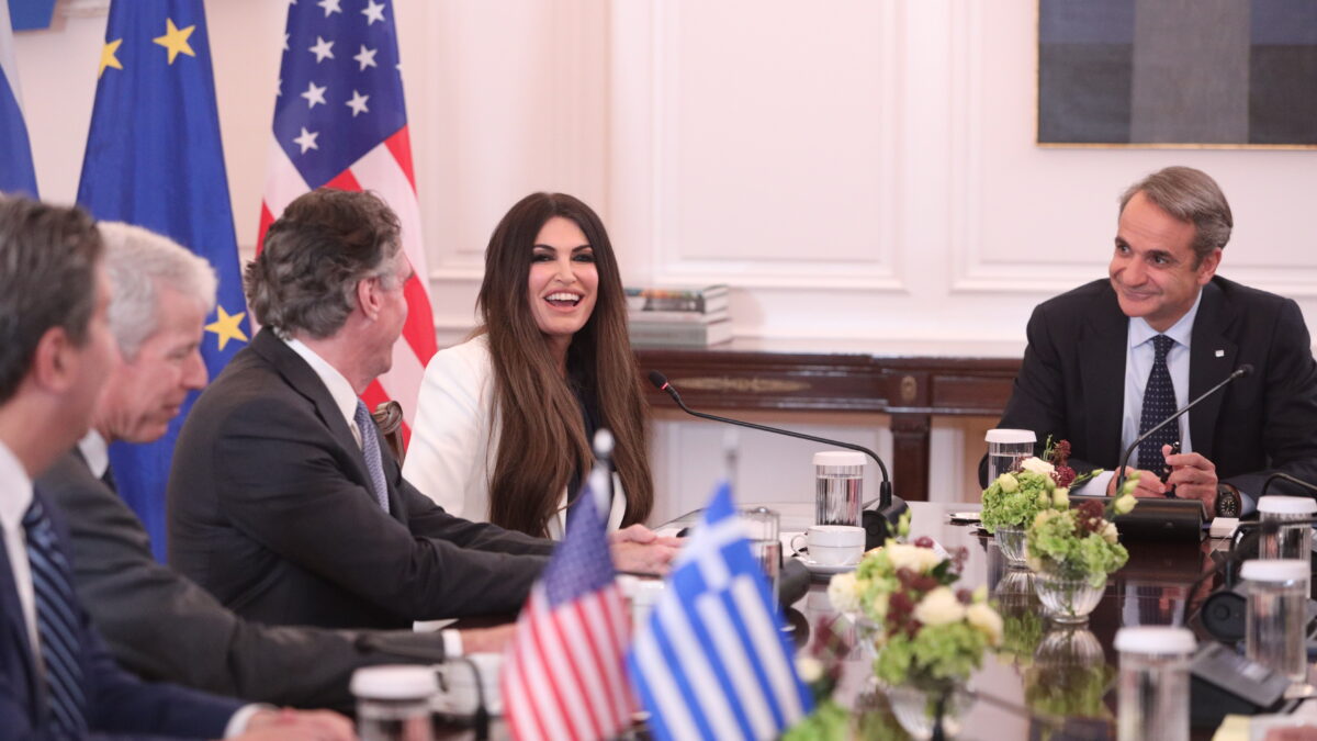 Ο πρωθυπουργός, Κυριάκος Μητσοτάκης με τον υπουργό Εσωτερικών των ΗΠΑ, Doug Burgum, τον Αμερικανό υπουργό Ενέργειας, Chris Wright και την πρέσβη των ΗΠΑ, Κίμπερλι Γκιλφόιλ στο Μέγαρο Μαξίμου 159