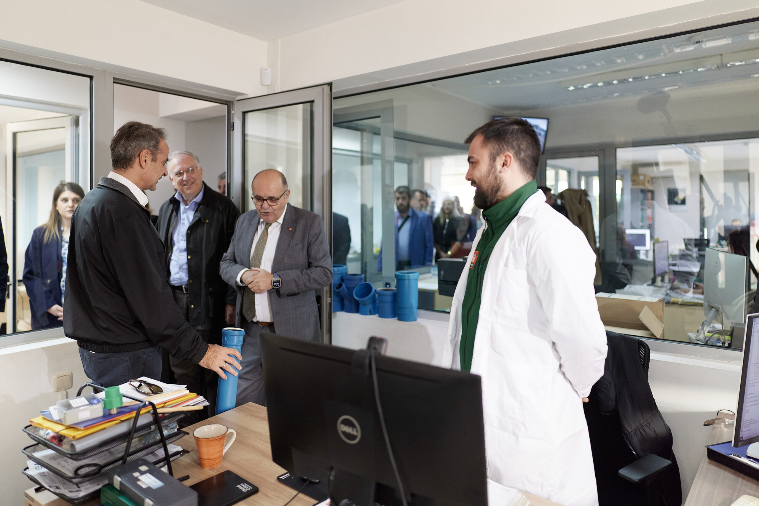 Στη συνέχεια, ο Πρωθυπουργός επισκέφθηκε την εταιρεία Interplast, η οποία παράγει ολοκληρωμένα συστήματα ύδρευσης, θέρμανσης, κλιματισμού και αποχέτευσης στους τομείς της οικοδομής, των τεχνικών έργων και των βιομηχανικών εγκαταστάσεων. Ο Κυριάκος Μητσοτάκης ξεναγήθηκε στην εργοστασιακή μονάδα, ενώ ενημερώθηκε για τη διαδικασία παραγωγής. Η Interplast, που απασχολεί 140 εργαζόμενους, εξάγει τα προϊόντα της σε πάνω από 75 χώρες.
