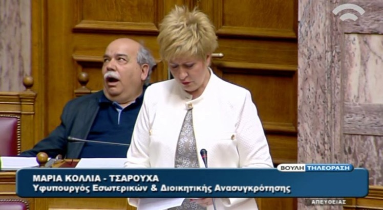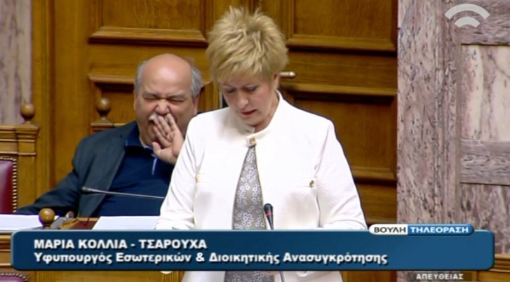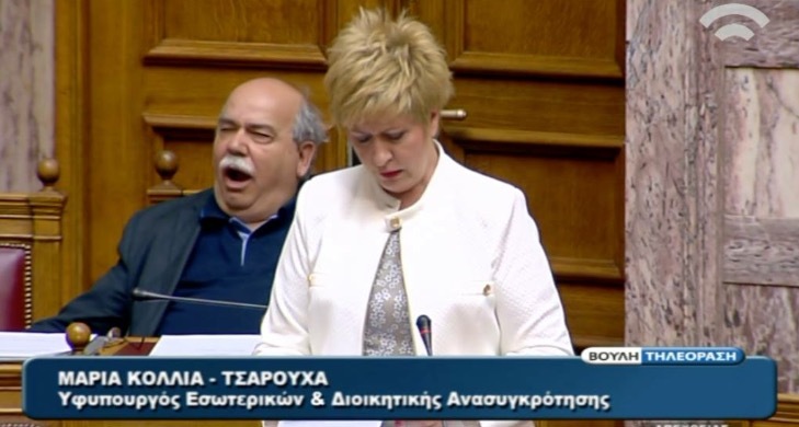 Η… νύστα επισκέφτηκε τον Νίκο Βούτση την ώρα που η υφυπουργός Εσωτερικών (προερχόμενη από τους ΑΝΕΛ) Μαρία Κόλλια Τσαρουχά απαντούσε σε ερώτηση βουλευτή.