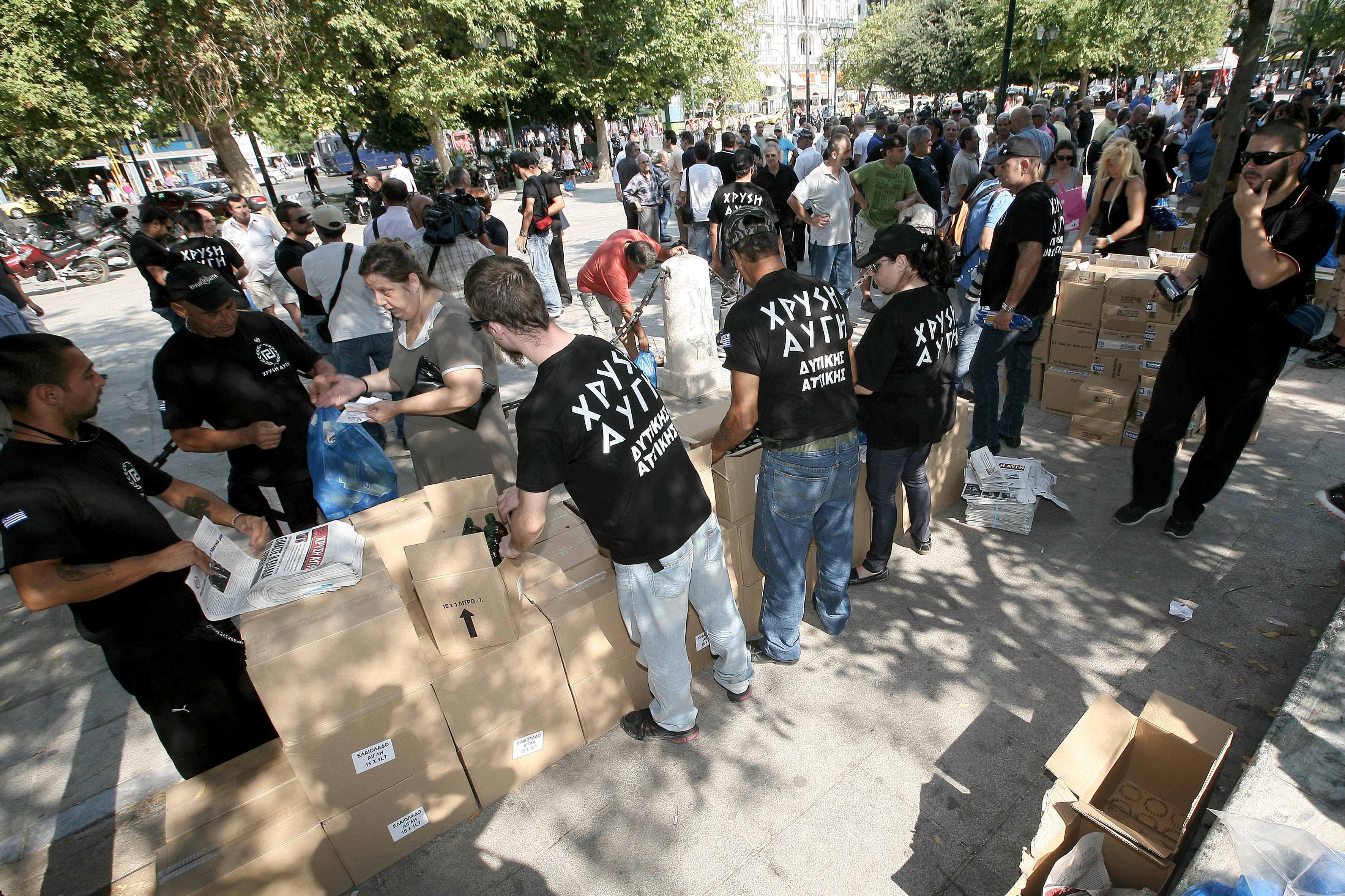 Σε ανακοίνωσή της η Χρυσή Αυγή κάνει λόγο για παράνομο σχέδιο απαγόρευσης της διανομής τροφίμων από Δένδια και Καμίνη με τις ευλογίες Σαμαρά και επισημαίνει πως θα υπερασπιστεί με κάθε νόμιμο μέσο τα συνταγματικά κατοχυρωμένα δικαιώματά της.