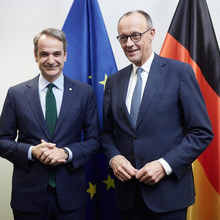 Κυριάκος Μητσοτάκης και Φρίντριχ Μερτς κατά τη διάρκεια της συνάντησης στο Βερολίνο συζήτησαν θέματα αμοιβαίου και ευρωπαϊκού ενδιαφέροντος με έμφαση στην οικονομία και την ανταγωνιστικότητα της ΕΕ.