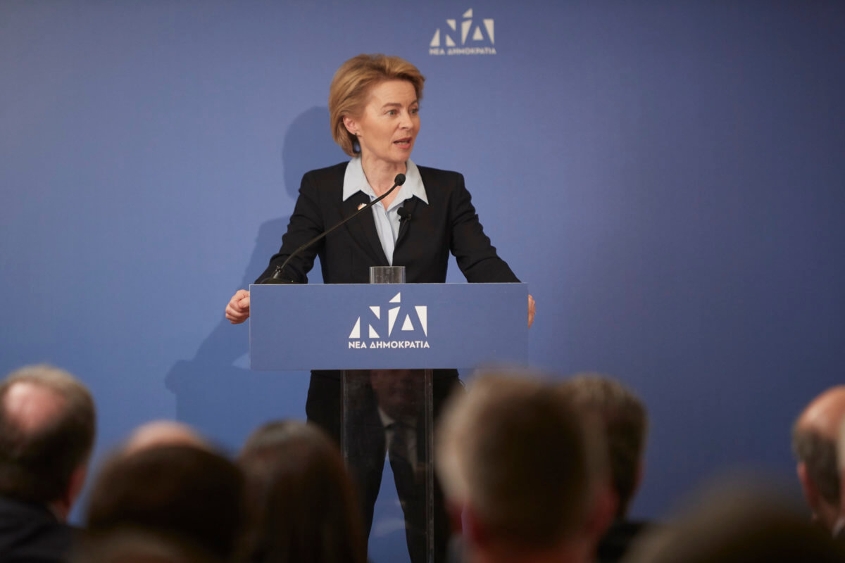 Στην Αθήνα είχε βρεθεί προ τριμήνου η Ούρσουλα φον ντερ Λάιεν που είναι υποψήφια για να αναλάβει την προεδρία της Κομισιόν στη θέση του Ζαν Κλοντ Γιούνκερ. Κι αυτό για να πάρει μέρος σε εκδήλωση της Γραμματείας Διεθνών Σχέσεων της ΝΔ και του Ινστιτούτο Δημοκρατίας Κωνσταντίνος Καραμανλής.