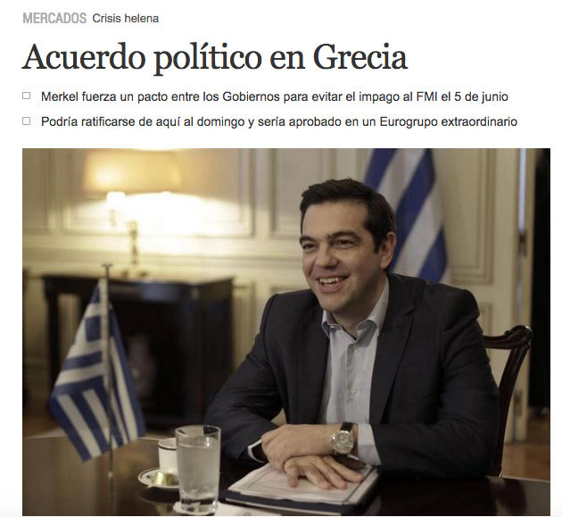 - Η Μέρκελ προωθεί συμφωνία για να πληρωθεί η δόση στο ΔΝΤ στις 5 Ιουνίου, γράφει η ισπανική εφημερίδα
