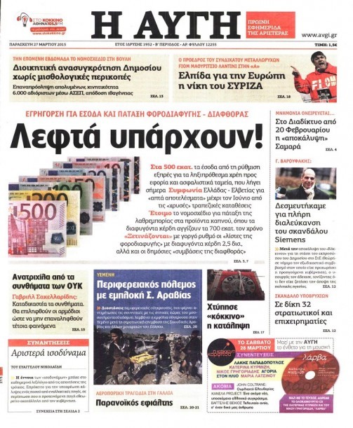 Σάλος από το σημερινό πρωτοσέλιδο της Αυγής με το “Λεφτά Υπάρχουν”