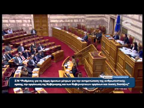 Ο κ. Βενιζέλος δήλωσε ότι «δεν θεωρεί πως το νομοσχέδιο για την αντιμετώπιση της ανθρωπιστικής κρίσης έχει ψηφιστεί επί της αρχής», ενώ κατηγόρησε την κ. Κωνσταντοπούλου πως «θέλει πολιτικά να ταυτιστεί με τη Χρυσή Αυγή και να την θέσει υπό την αιγίδα και προστασία της».