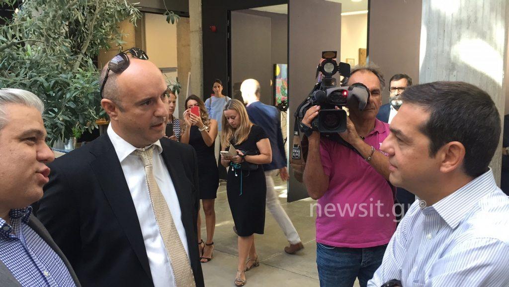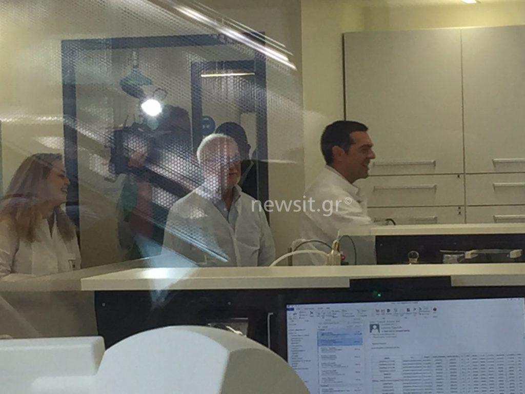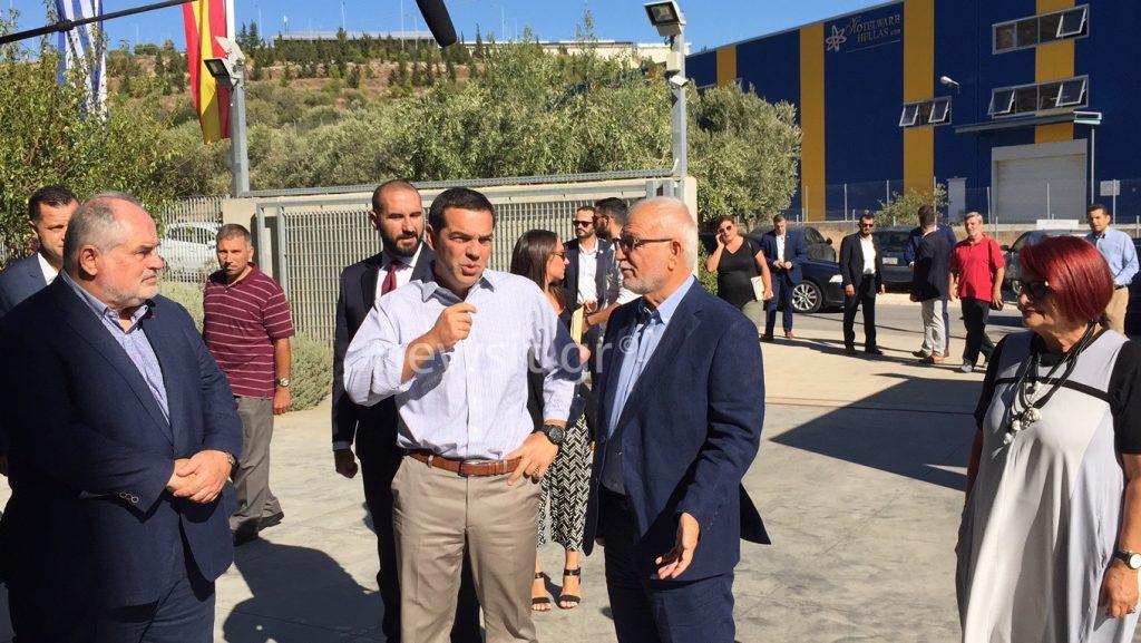 Τον πρωθυπουργό υποδέχτηκε ο πρόεδρος της εταιρείας ο οποίος του έκανε μια μίνι ξενάγηση στο κεντρικό κτίριο.