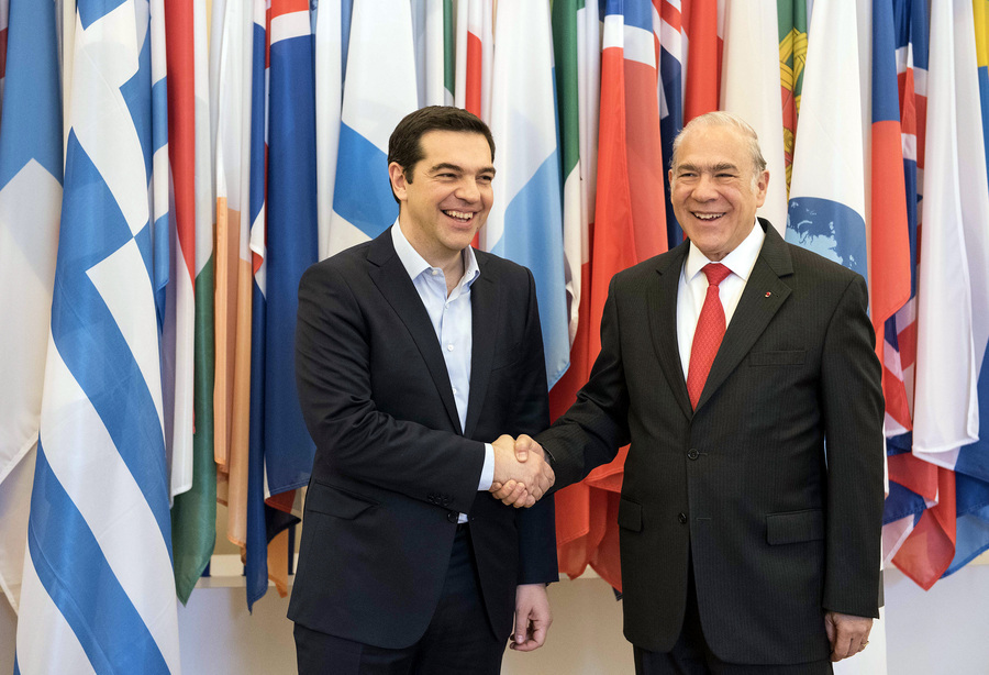 Τσίπρας και Γκουρία υπέγραψαν συμφωνία με την οποία ο ΟΟΣΑ αναλαμβάνει να δώσει τεχνογνωσία στην ελληνική πλευρά όσον αφορά τον σχεδιασμό και την εφαρμογή των μεταρρυθμίσεων που αποτελούν προτεραιότητα της ελληνικής κυβέρνησης.