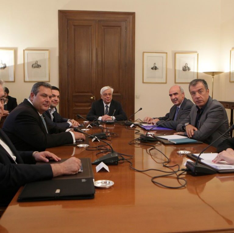 Στο συμβούλιο των πολιτικών αρχηγών συμμετείχαν εκτός από τον τότε Πρόεδρο της Δημοκρατίας και τον τότε πρωθυπουργό, ο αρχηγός της αξιωματικής αντιπολίτευσης και τότε μεταβατικός πρόεδρος της ΝΔ, Βαγγέλης Μεϊμαράκης, η αείμνηστη πρόεδρος του ΠΑΣΟΚ, Φώφη Γεννηματά, ο γενικός γραμματέας του ΚΚΕ, Δημήτρης Κουτσούμπας, ο επικεφαλής του Ποταμιού, Σταύρος Θεοδωράκης και ο πρόεδρος των Ανεξάρτητων Ελλήνων και τότε υπουργός Εθνικής Άμυνας, Πάνος Καμμένος.