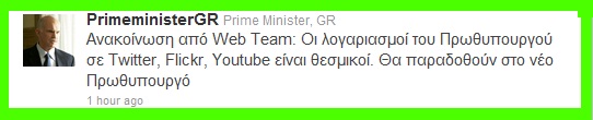 Ωστόσο, ο λογραρισμός του αυτός, μαζί με εκείνον στο Flickr και το YouTube, θα παραδοθούν στο νέο πρωθυπουργό της Ελλάδας αφού είναι θεσμικοί.