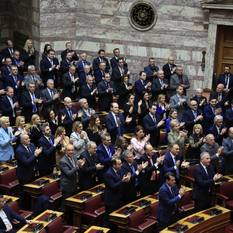 Η εκλογή του Κώστα Τασούλα στο ύπατο αξίωμα του Προέδρου της Δημοκρατίας έγινε δεκτή με χειροκροτήματα από τους βουλευτές της ΝΔ.