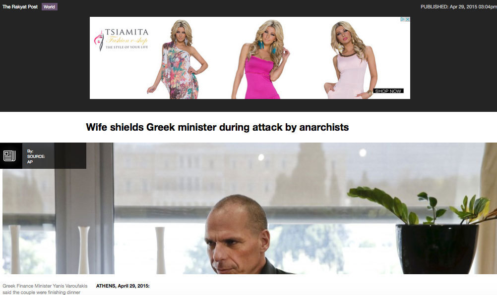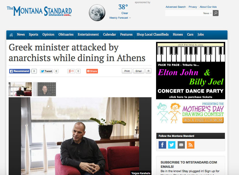 Το να είναι όμως η συγκεκριμένη είδηση στην πρώτη σελίδα εφημερίδας της Ινδονησίας, στην μακρινή Μοντάνα και σε κάποιο σάιτ σε χώρα του Περσικού δεν το λες και τόσο φυσιολογικό…. Κι όμως! Ο Γιάνης Βαρουφάκης, η Δανάη Στράτου και οι αντιεξουσιαστές των Εξαρχείων έγιναν διάσημοι και μιλά για εκείνους όλη η υφήλιος. Στην κυριολεξία….