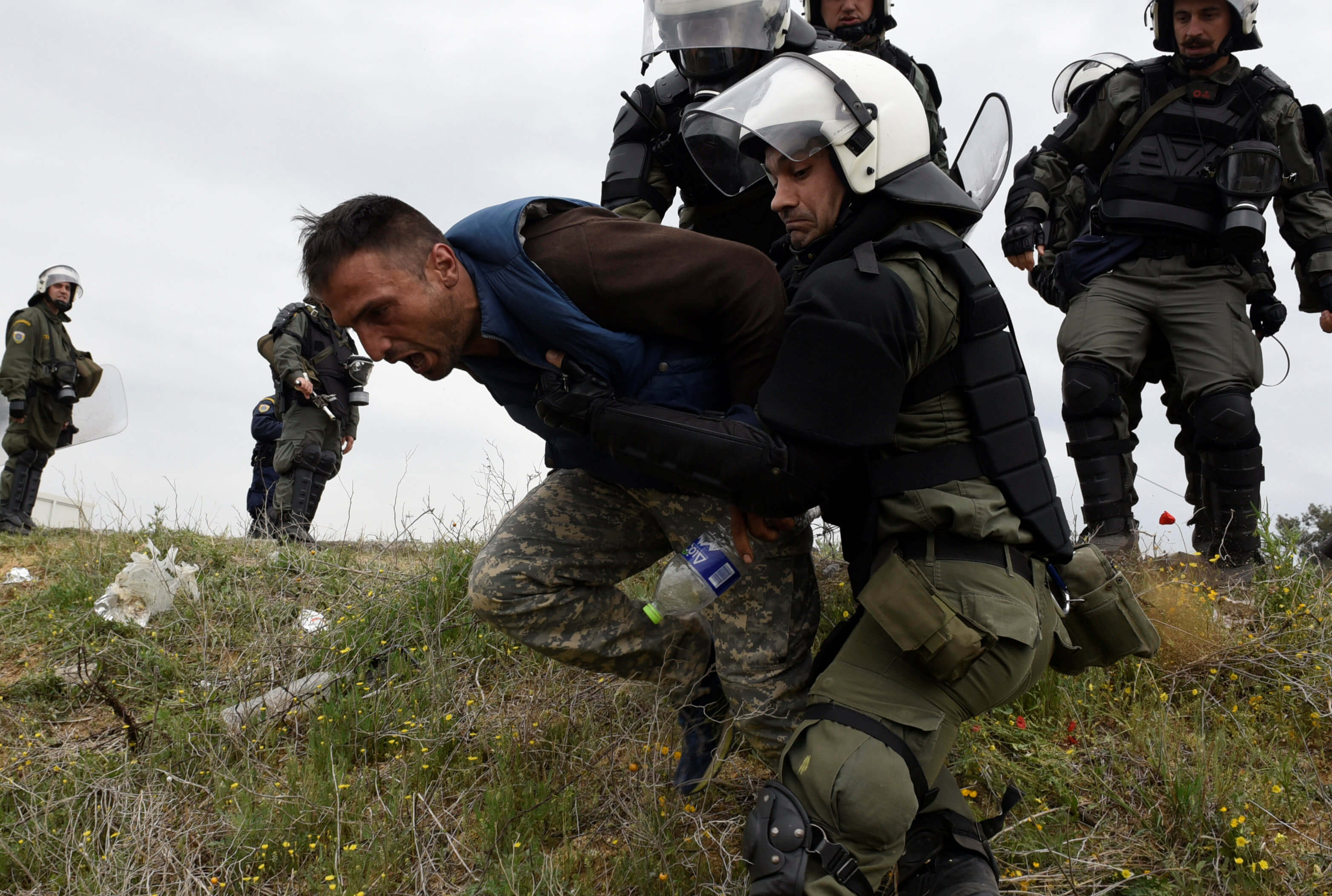 Μητέρες με τα παιδιά στην αγκαλιά προσπάθησαν να διασπάσουν τον φραγμό των ΜΑΤ.
