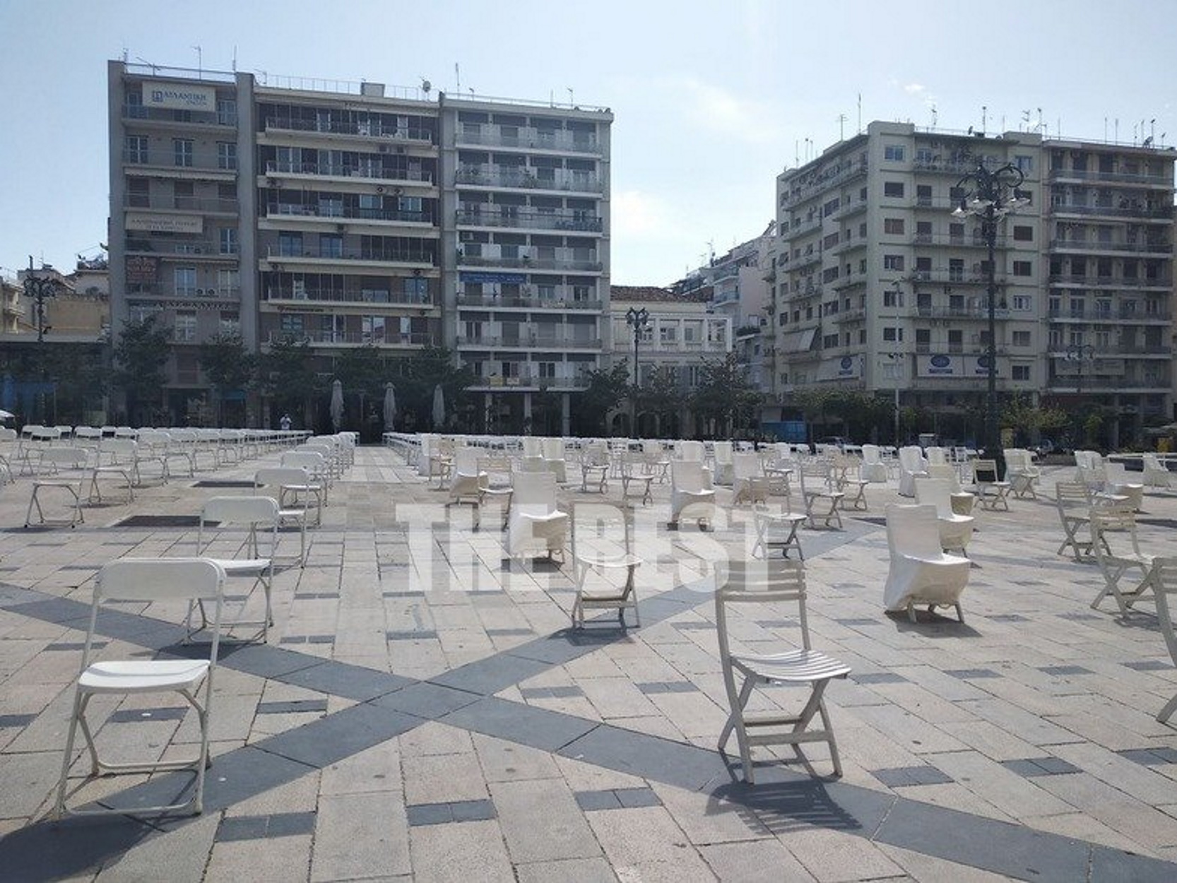18:57 06.05.20 Πάτρα: Γέμισε με άδειες καρέκλες (pics) "Άδειες καρέκλες" στην Πάτρα στο πλαίσιο πανελλαδικής διαμαρτυρίας από καταστηματάρχες του χώρου της εστίασης. Αγωνιούν για το μέλλον...