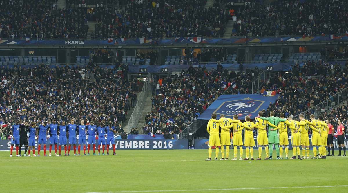 Η Γαλλία επικράτησε της Σουηδίας με 2-1 στο Παρίσι, στο πλαίσιο της προκριματικής φάσης του παγκοσμίου Κυπέλλου του 2018. Πριν από την έναρξη του αγώνα, τηρήθηκε ενός λεπτού σιγή στο Stade de France, δύο ημέρες πριν συμπληρωθεί ένας χρόνος από τα τρομοκρατικά χτυπήματα στη γαλλική πρωτεύουσα.