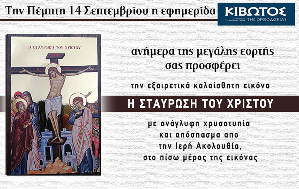 15:58 01.04.24 Την Πέμπτη, 4 Απριλίου, κυκλοφορεί το νέο φύλλο της Εφημερίδας «Κιβωτός της Ορθοδοξίας» Την Πέμπτη 4 Απριλίου η εφημερίδα Κιβωτός της Ορθοδοξίας σας προσφέρει δυο συλλεκτικέςεικόνες αφιερωμένες στην χάρη της Παναγίας για...