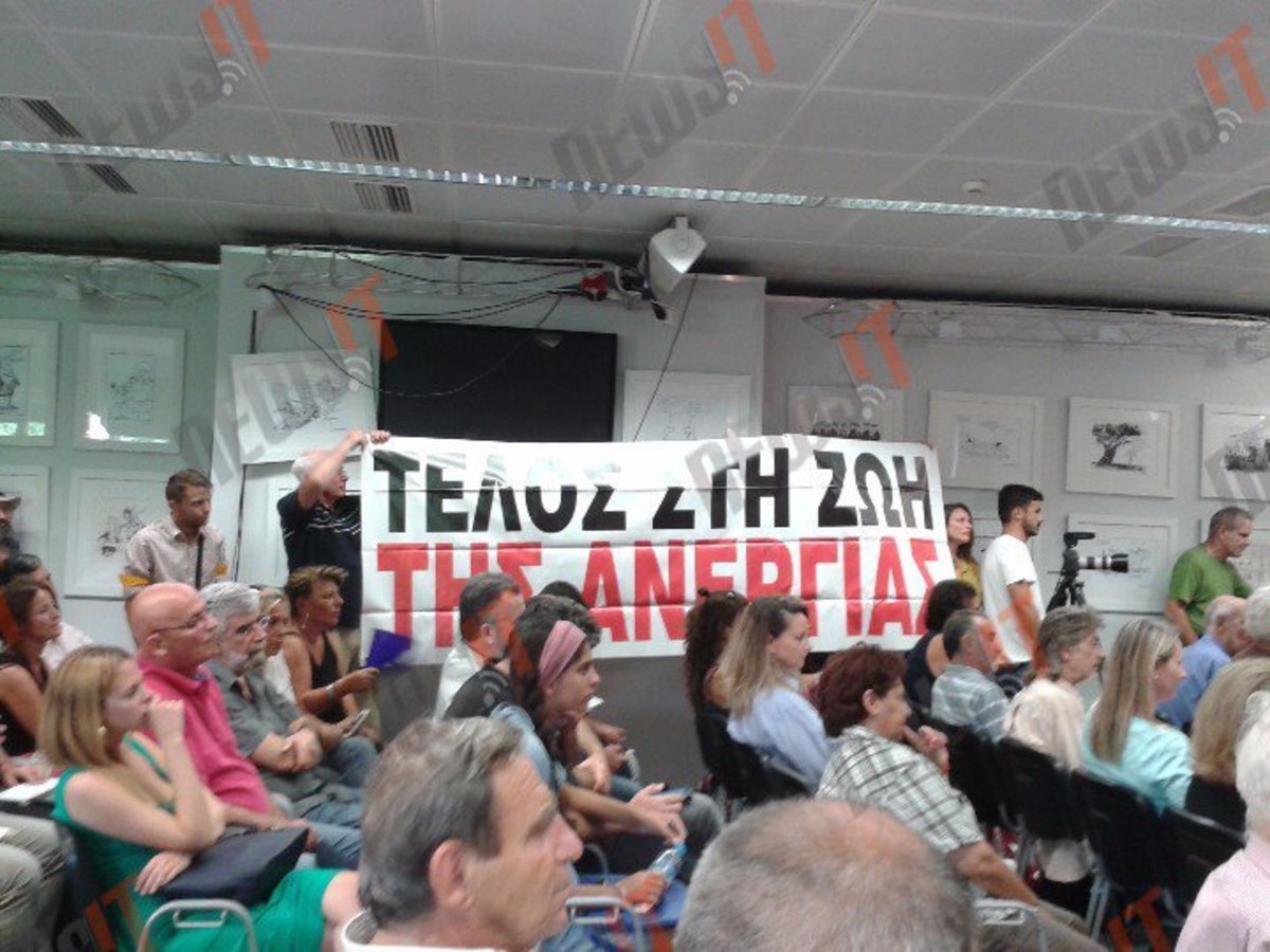 - Οι συμβασιούχοι είχαν αναρτήσει από νωρίς πανό κατά της Ζωής Κωνσταντοπούλου με σύνθημα “ΤΕΛΟΣ ΣΤΗ ΖΩΗ ΤΗΣ ΑΝΕΡΓΙΑΣ”