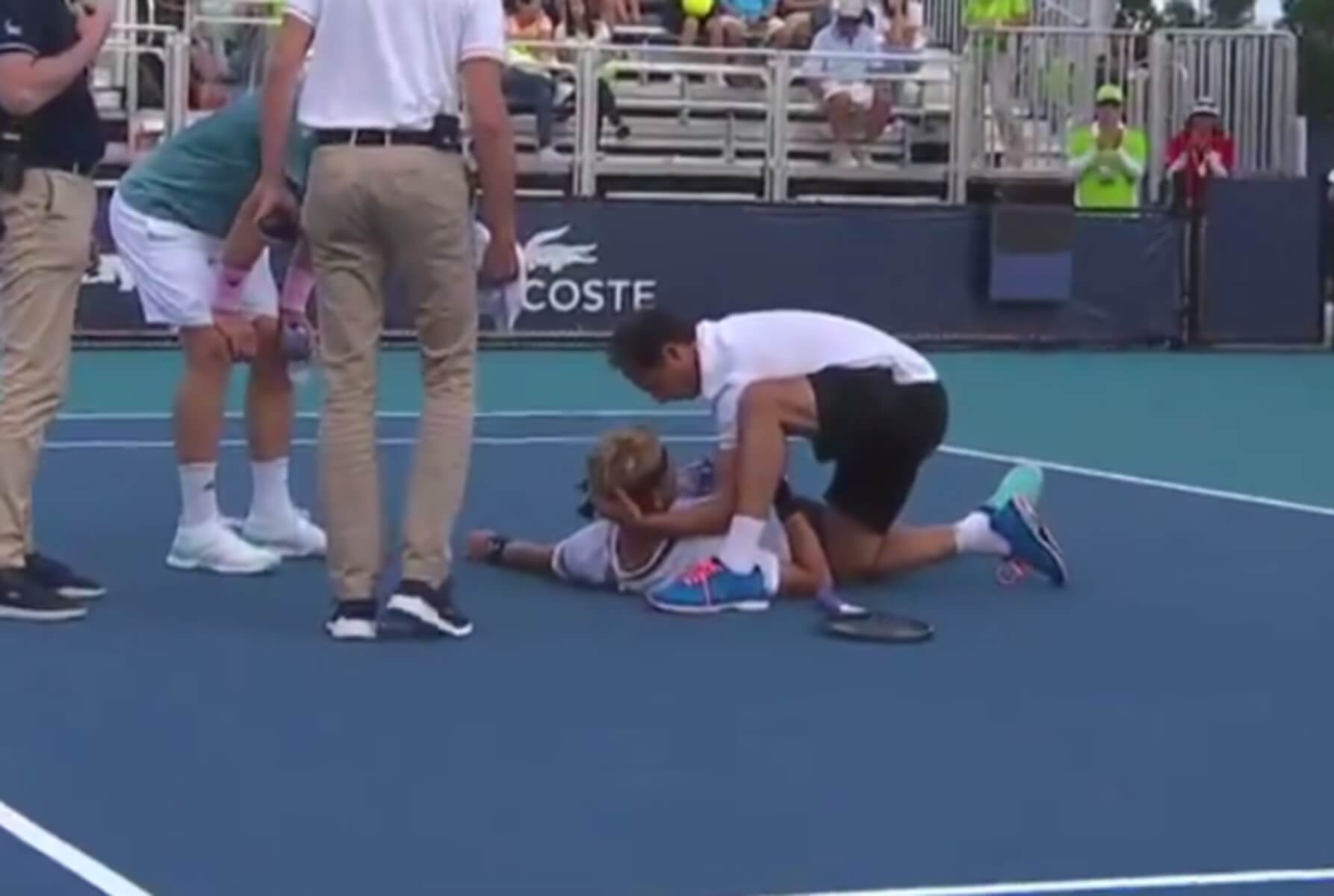 13:02 21.03.19 Κατέρρευσε απ’τις κράμπες! Αποχώρησε υποβασταζόμενος και με δάκρυα – video Συγκλονίζει η εικόνα του Νίκολα Κουν. Ο νεαρός τενίστας ταλαιπωρήθηκε από επίπονες κράμπες και εγκατέλειψε την αναμέτρηση με τον Μίσα Ζβέρεφ, για τον 1ο γύρο του Miami Masters την Τετάρτη (20.03.2019).