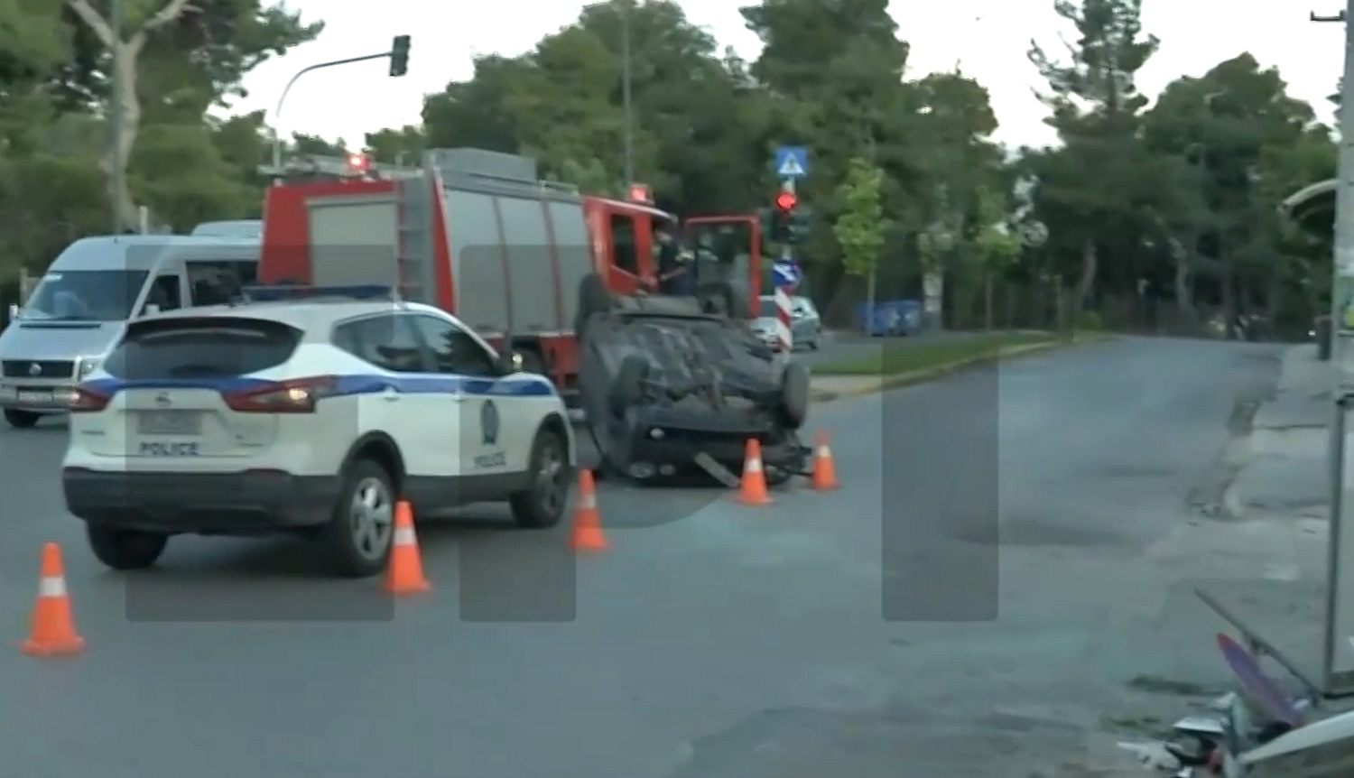 Τροχαία δυστυχήματα σε Ασπρόπυργο και Μαρούσι, αυτοκίνητο ξήλωσε πινακίδα και τούμπαρε στη Λεωφόρο Μαραθώνος