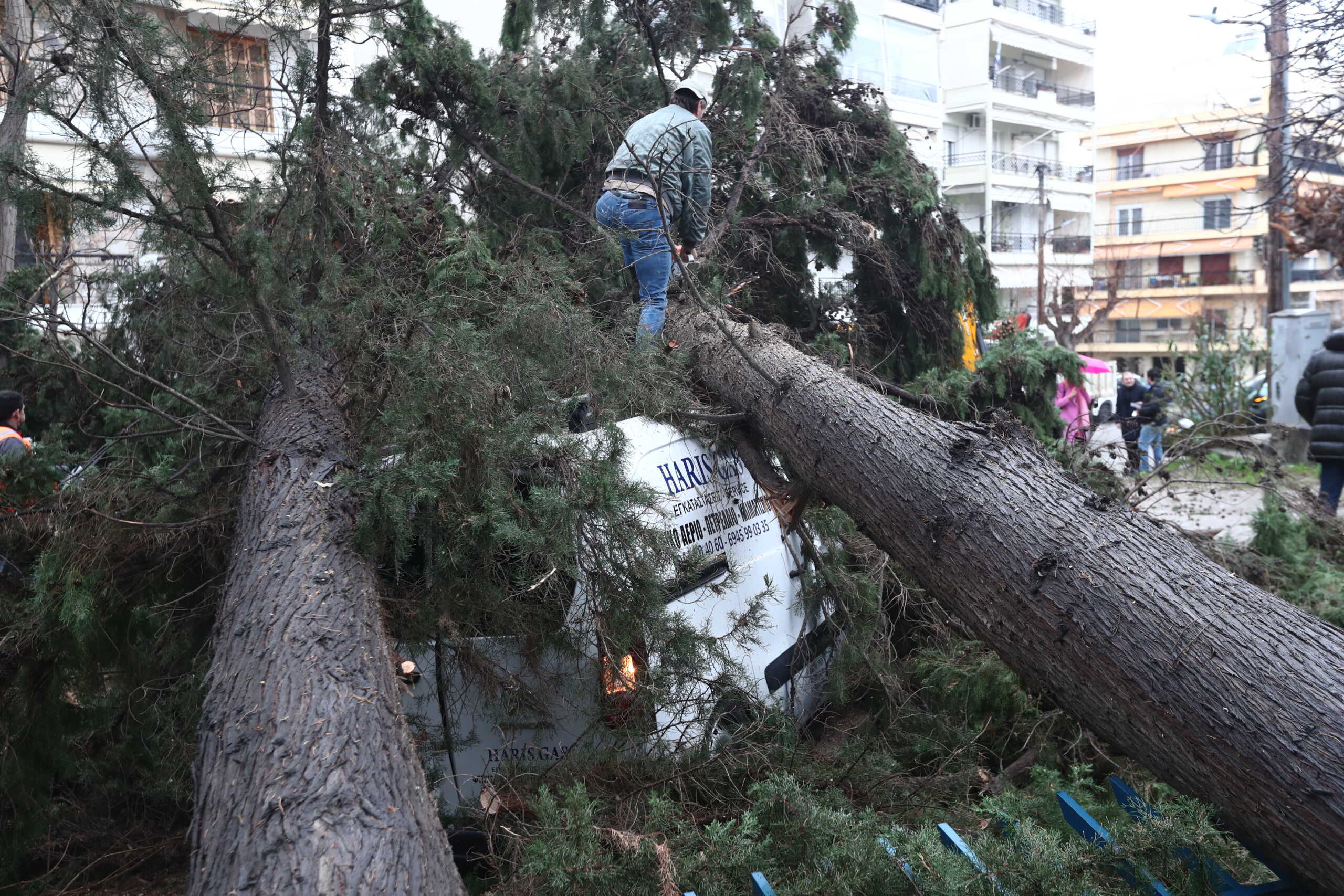 Ο καιρός έδειξε τα δόντια του και στη Θεσσαλονίκη με πτώσεις δέντρων και καταστροφές σε αυτοκίνητα. Τι λέει ιδιοκτήτης για τις ζημιές...