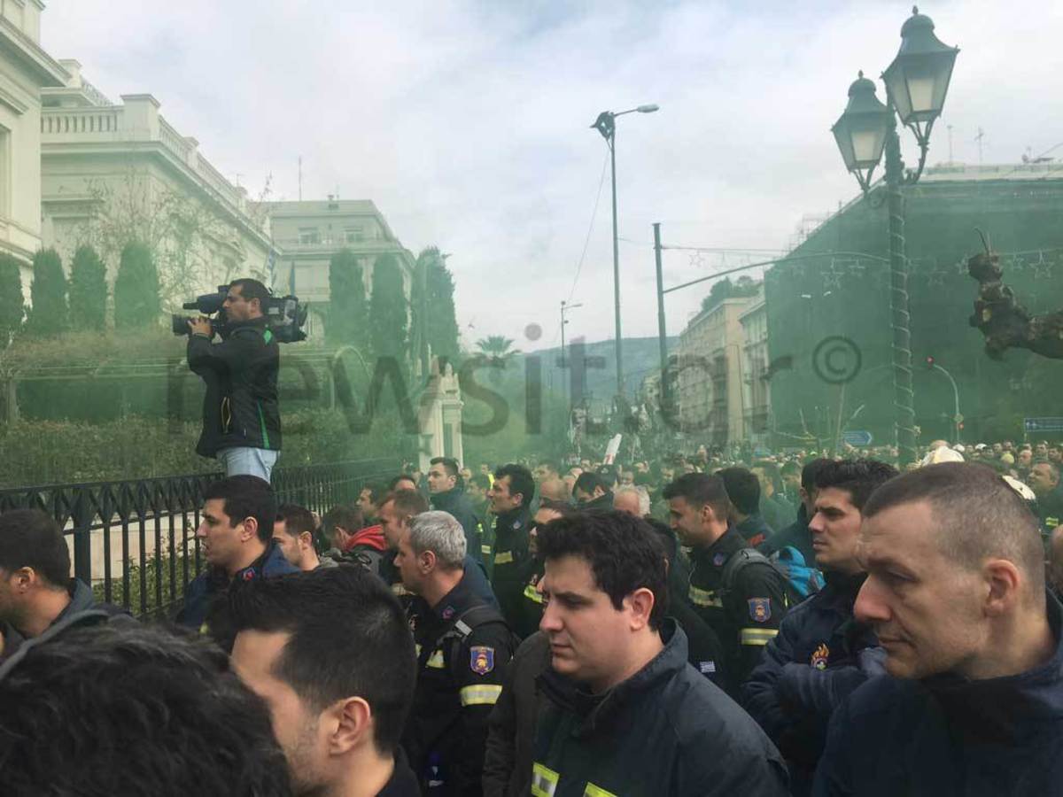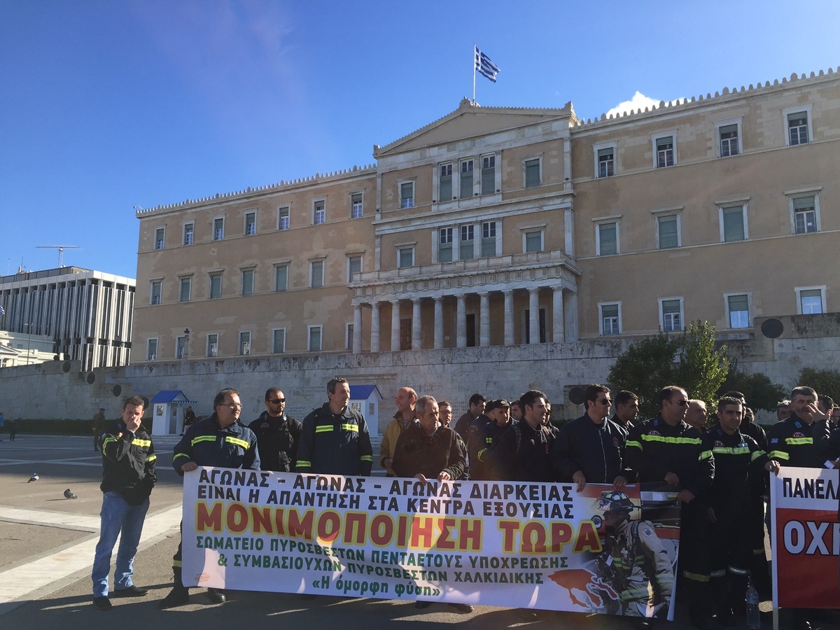 Έξω από τη Βουλή πάλι οι πυροσβέστες