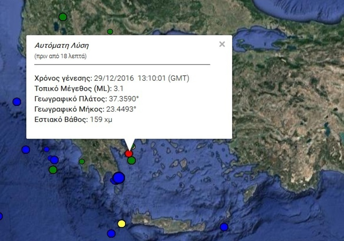 Σύμφωνα με την αυτόματη λύση του Γεωδυναμικού Ινστιτούτου, ο σεισμός ήταν 3 ρίχτερ...