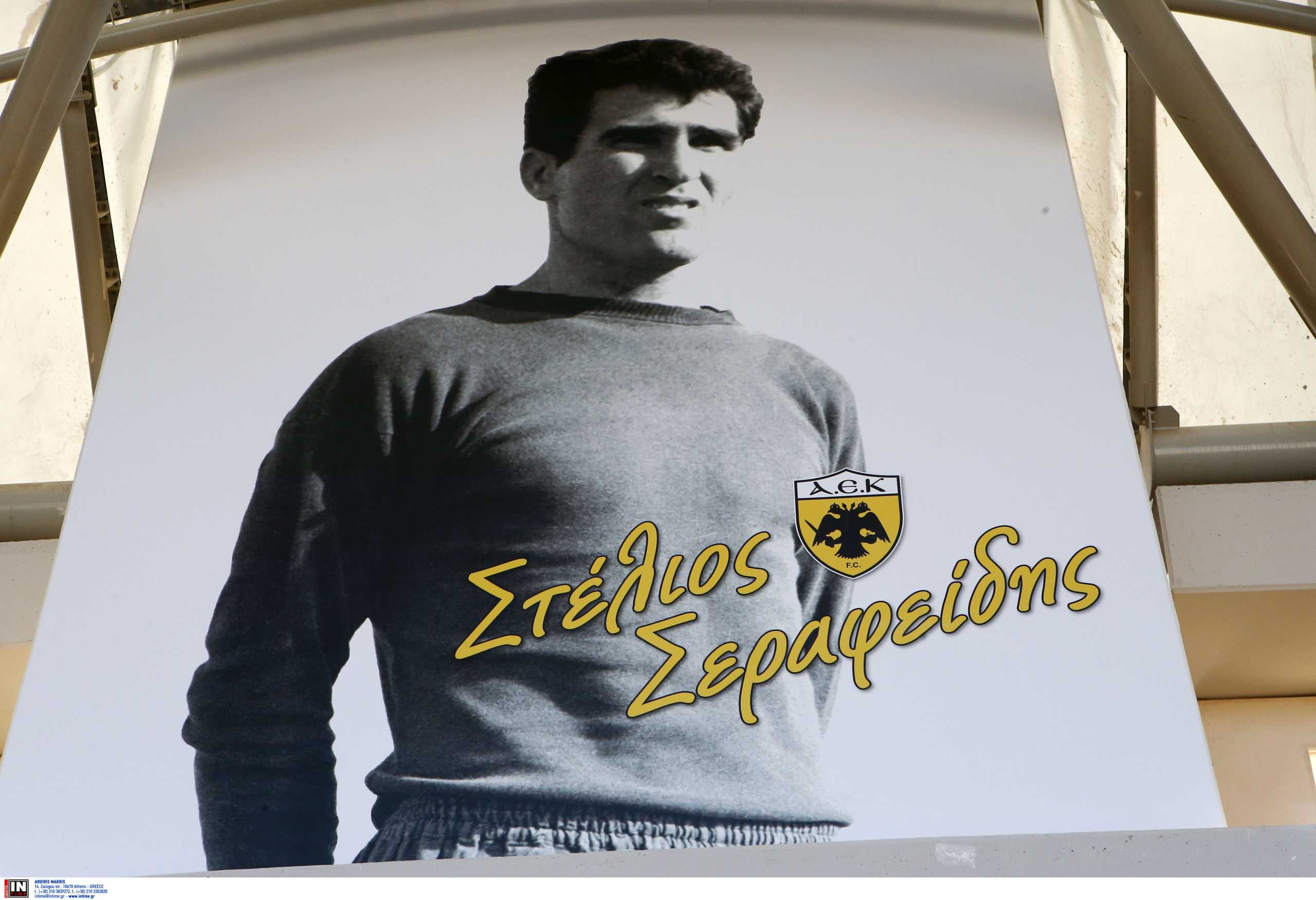 Η ΑΕΚ αποχαιρέτησε το μεσημέρι του Σαββάτου (8/1) τον εμβληματικό αρχηγό της, Στέλιο Σεραφείδη, ο οποίος έφυγε από τη ζωή σε ηλικία 86 ετών.