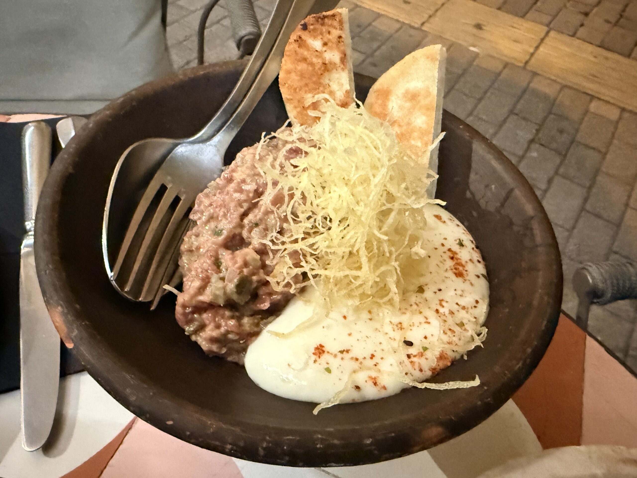 Στη… βάση του νεοκλασικού, σαν φύλακας θα έλεγε κανείς, ένα μικρό εστιατόριο, τόσο cosy που «φωνάζει» (χωρίς όμως να κάνει φασαρία) πως πρέπει να το επισκεφτείς. Yphès το όνομά του.