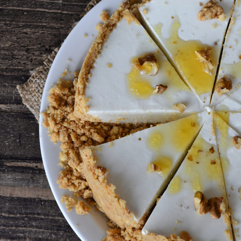 Αφήνουμε να κρυώσει καλά και διακοσμούμε με λίγο μέλι και κομμένα φιστίκια Αιγίνης.