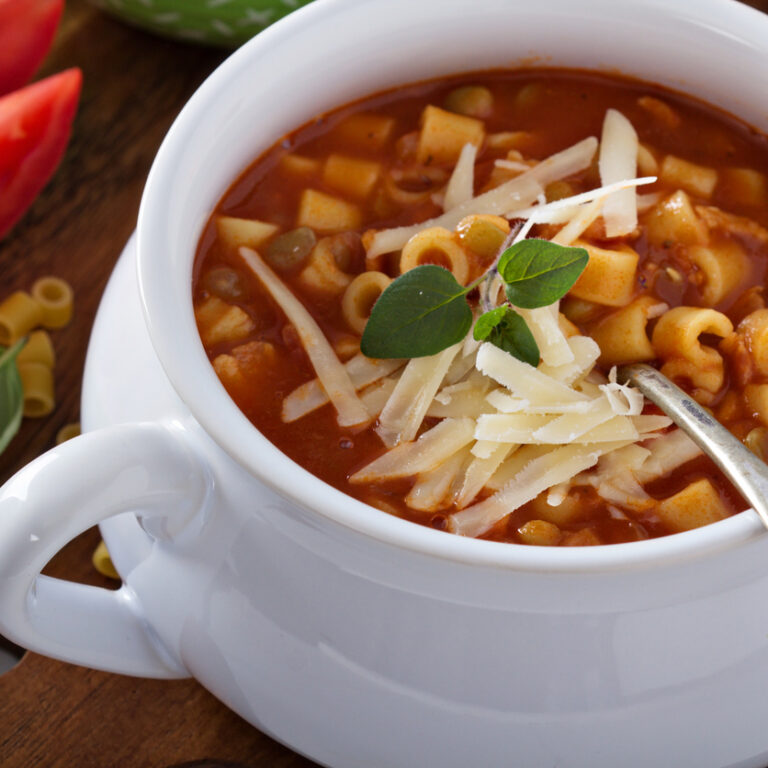 Η σούπα αυτή εμπλουτίζεται σε γεύση, με παρμεζάνα, την οποία χρησιμοποιούμε τριμμένη, αλλά βάζουμε και τη φλούδα από το κομμάτι του τυριού, που δίνει περισσότερη αλμυρή, γεύση umami στον ζωμό.