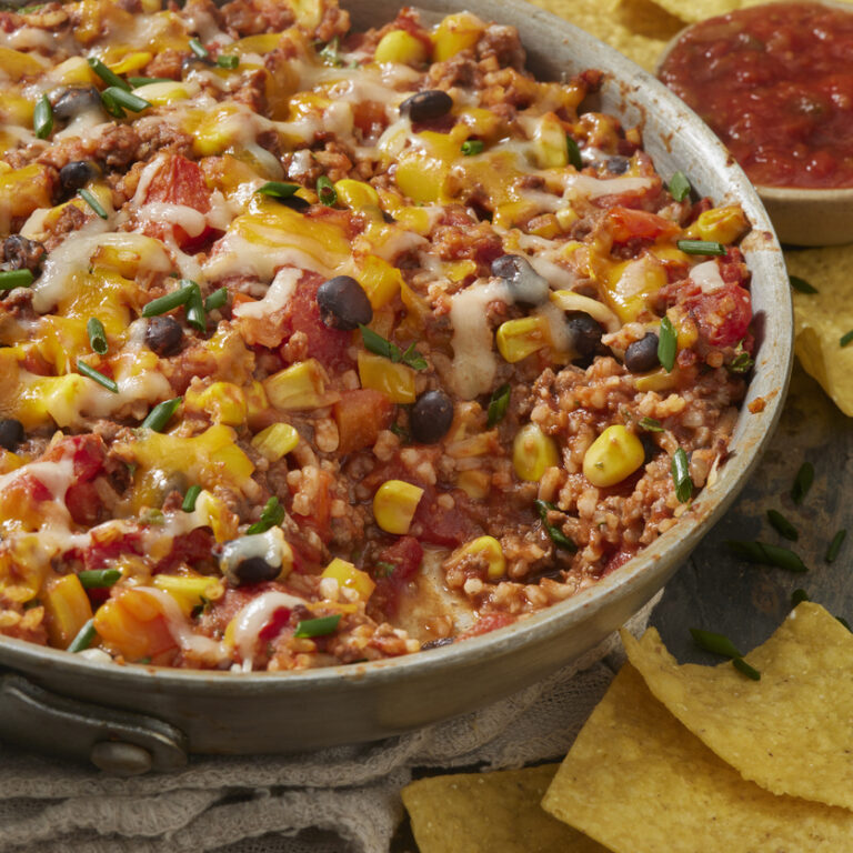 Tip: Αντί να ρίξω το τριμμένο τυρί ανακατεμένο με τα τσιπς τορτίγιας, τα στρώνω πάνω από το μείγμα του κιμά και των λαχανικών και ρίχνω σε όλη την επιφάνεια τα τυριά που λιώνουν ομοιόμορφα παντού, για την πιο νόστιμη «nacho-cheesy» κρούστα.