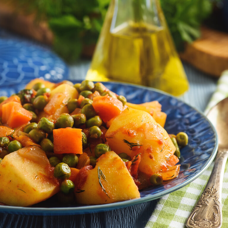 Αρακάς κοκκινιστός με πατάτες και καρότα