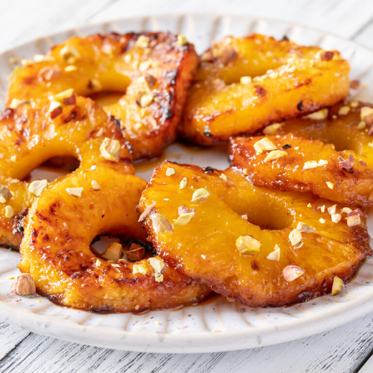 Το αρωματισμένο σιρόπι με ρούμι και μπαχαρικά, θα δώσει αυτή την υφή και το άρωμα στον ανανά.