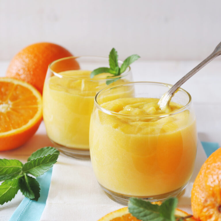 Αυτή η μους, που περιέχει χυμό και ξύσμα πορτοκαλιού, είναι ιδιαίτερα αρωματική και βελούδινη.
