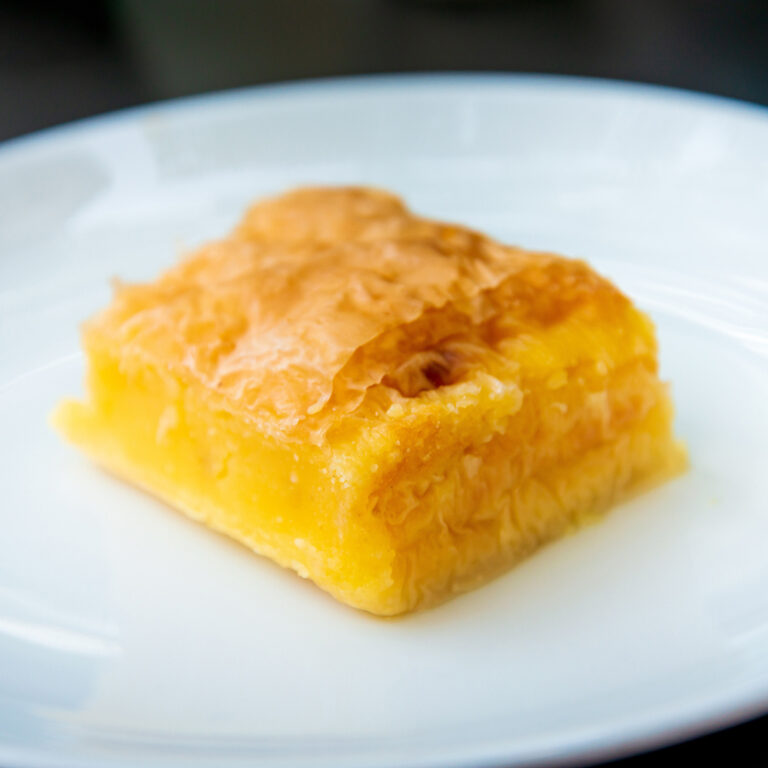 Σκεφτείτε την περισσότερο σαν γαλακτομπούρεκο με κρέμα πορτοκαλιού, που σιροπιάζεται μόλις βγει από τον φούρνο.