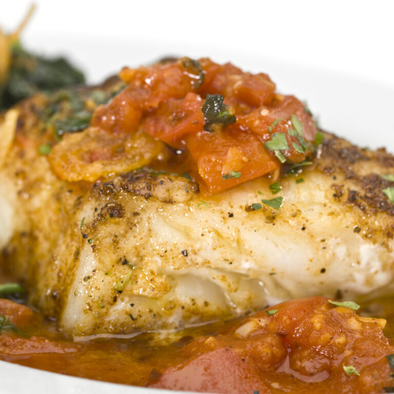 Αλά Σπετσιώτα, ή πλακί ή αλλιώς φιλέτο ψαριού με σάλτσα ντομάτας, στον φούρνο.