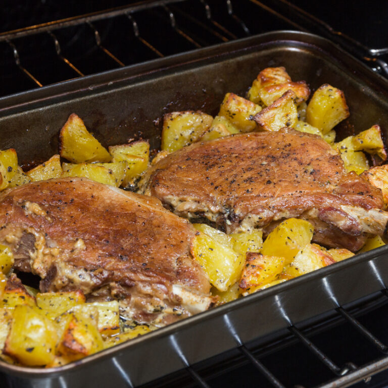 Ετοιμάζεται μέσα σε ένα ταψί χωρίς καμία προετοιμασία και αν κόψουμε τις πατάτες μικρές, τότε θα ψηθούν στον ίδιο χρόνο με το κρέας.