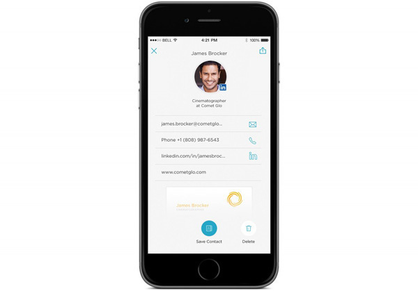 Επίσης η εφαρμογή μπορεί και συνδέεται με το λογαριασμό του χρήστη στο Linked και μπορεί και εντοπίζει αυτόματα με το σκανάρισμα μίας επαγγελματικής κάρτας το προφίλ του κατόχου της.