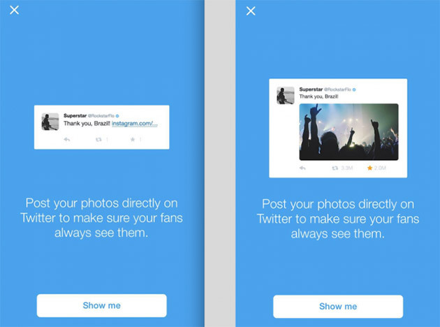 Βλέποντας να χάνει έδαφος από το Instagram, το Twitter άρχισε να λαμβάνει δραστικά μέτρα εμφανίζοντας μηνύματα στους χρήστες (ειδικά όσους έχουν πολλούς followers) με τα οποία τους, ενθαρρύνει να ανεβάζουν τις φωτογραφίες τους μέσα από το ίδιο Twitter που διαθέτει και αυτό υπηρεσία επεξεργασίας φωτογραφιών και να μην τις ανεβάζουν πρώτα στο Instagram.