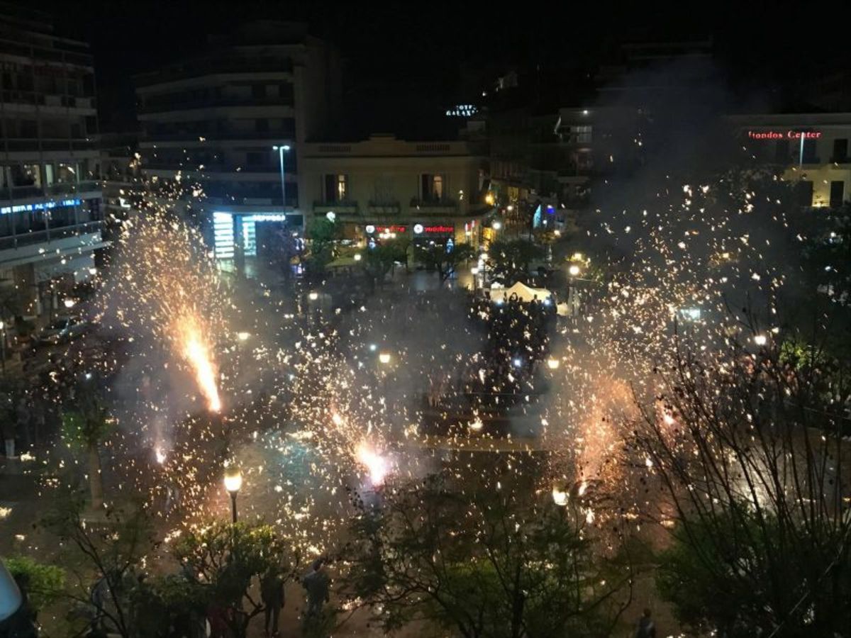 Χιλιάδες Αγρινιώτες και επισκέπτες παρακολούθησαν το έθιμο, ένα από τα χαρακτηριστικά πασχαλινά έθιμα της Ελλάδας ενώ οι χαλκουνάδες τους αντάμειψαν με εντυπωσιακό θέαμα, κάνοντας τη νύχτα μέρα.